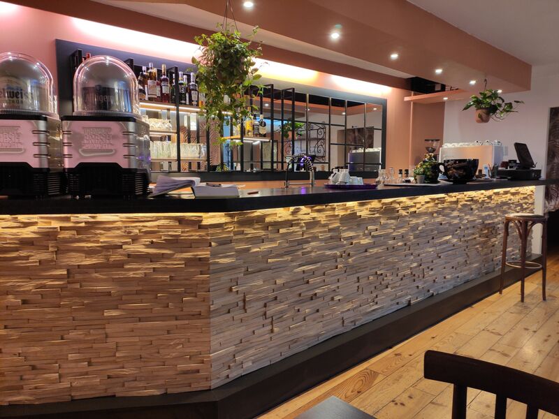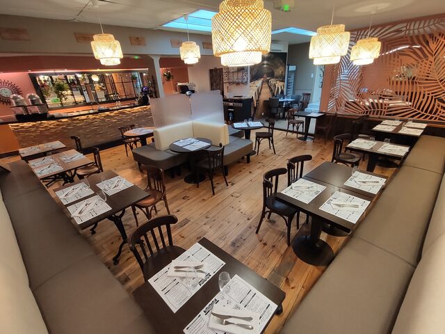Venez profiter de notre terrasse ou de notre salle climatisée au cadre chaleureux et contemporain, où nous serons heureux de vous accueillir avec le sourire. Nous avons également une belle sélection de vins pour les amateurs. Nous avons pris soin de rendre notre restaurant accessible à tous, avec un accès facile et la possibilité d'accueillir vos animaux de compagnie.